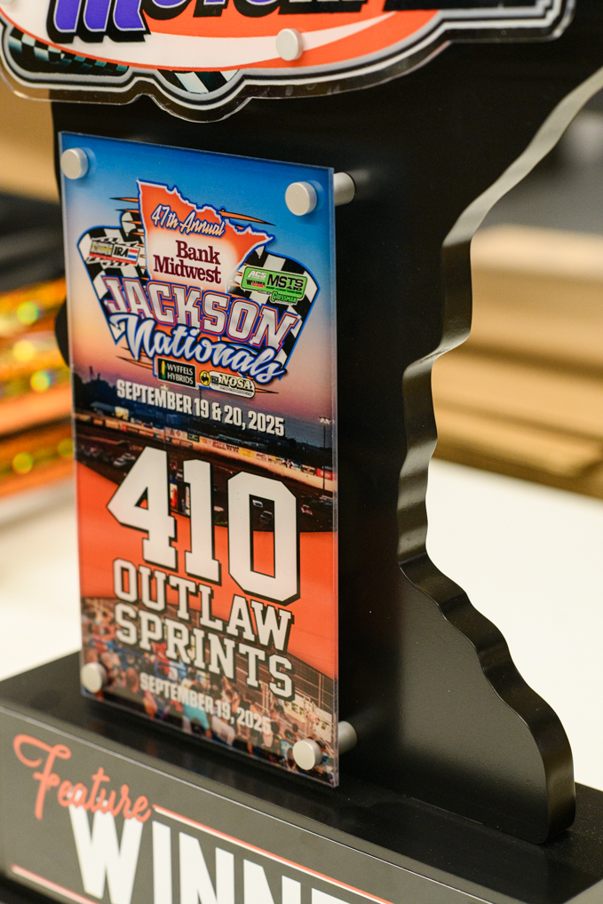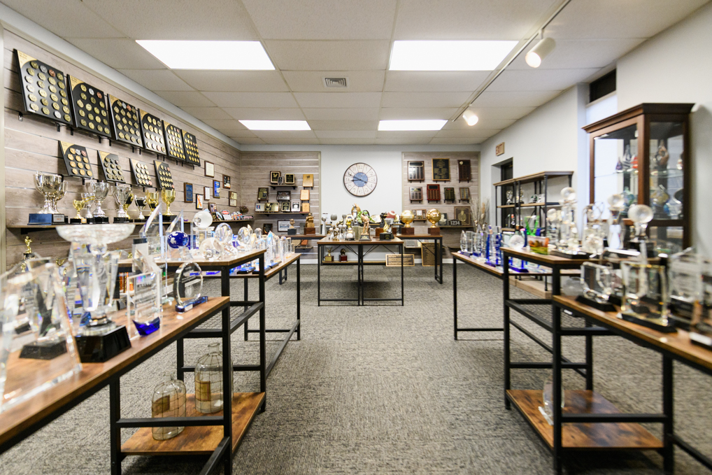 Customers can see samples, talk through ideas, have better quality control, faster turnaround times, and flexibility by buying locally through JD’s House of Trophies.