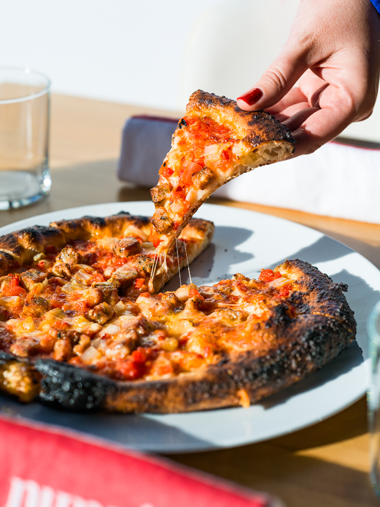 Nunzio’s Food Hall is a relaxed ristorante serving wood-fired pizza, sandwiches, and other comforting offerings.