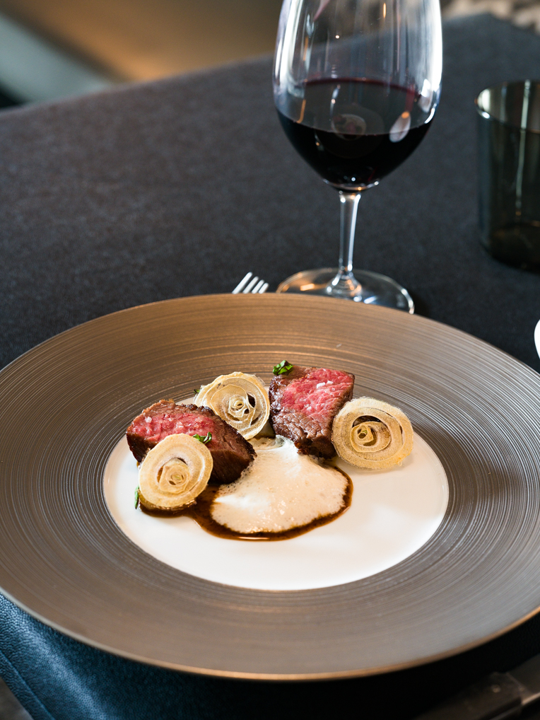 Guests can choose between the Chef’s Menu (four courses plus dessert) and the HK Signature Menu (seven courses plus desserts). Along with adding wine and champagne pairings, there is also a Caviar Service add-on with amber kaluga, buckwheat macaron, potato chips, brioche, crème fraîche, and pickled onion.