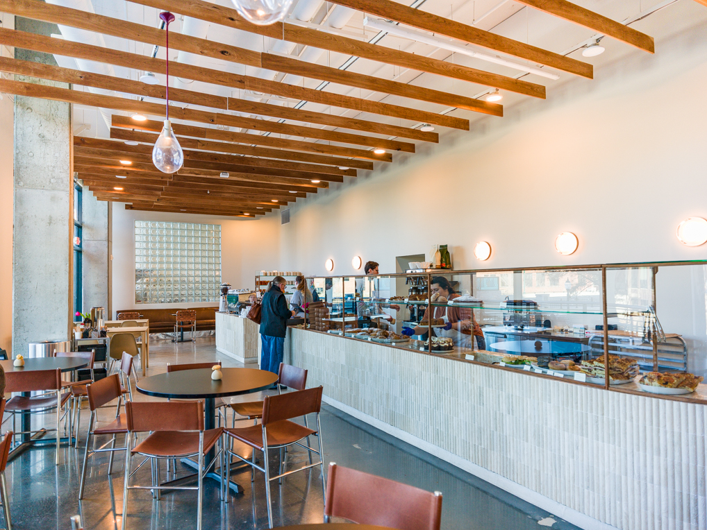 Café Breadico is open until 6 p.m. (3 p.m. on Sundays), so guests can enjoy a yogurt or bagel croissant in the morning, eat a sandwich for lunch, and grab a beer or Songbird Kombucha to end their day.