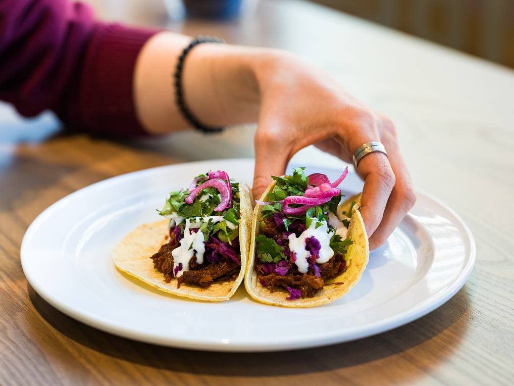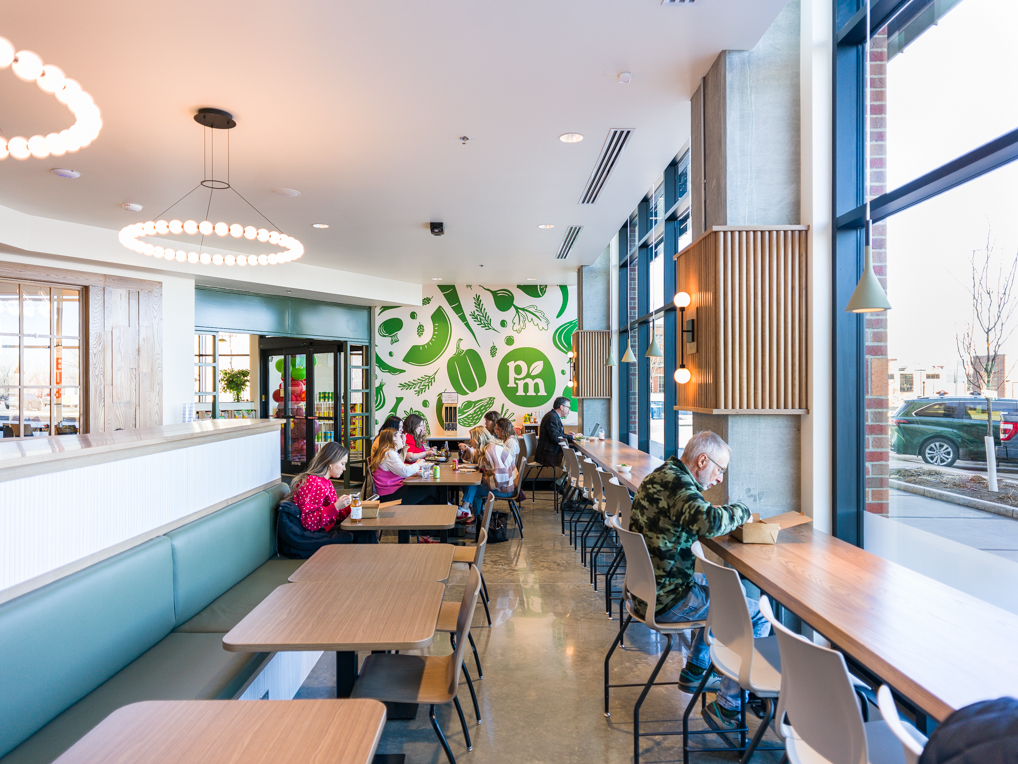 This includes being a place to grab a healthy lunch with friends, for work, or eating solo, and has options like the salad bar and kitchen, which offers made-to-order meals from a Breakfast Burrito and Focaccia Breakfast Sandwich, to World Bowls, to burgers, to tacos, and more.